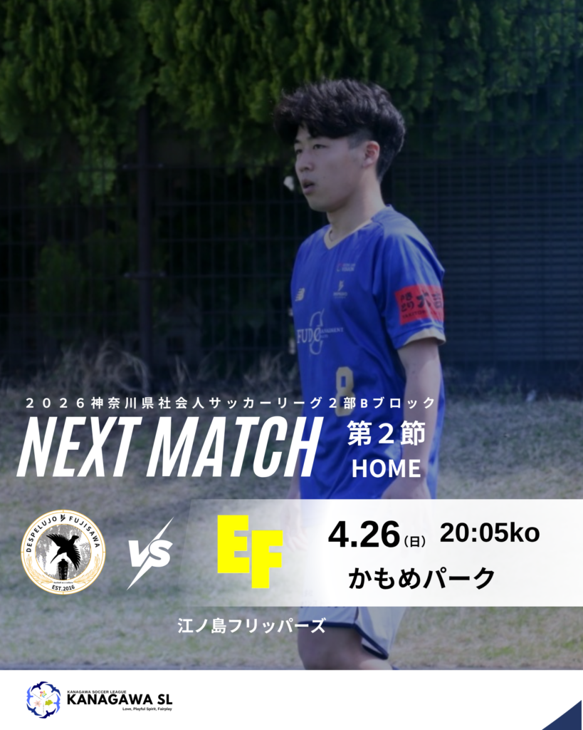 神奈川県社会人サッカーリーグ2部Bブロック第2節 vs 江ノ島フリッパーズ 試合情報